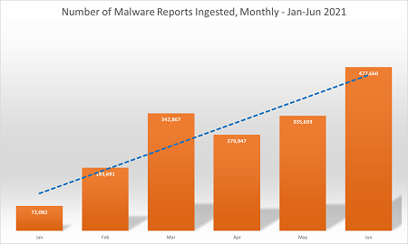 shows a 663% increase in malware reports in the first half of 2021.