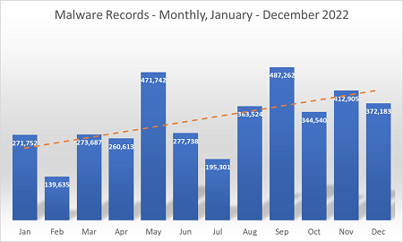- Malware activity increased in 2022, continuing the trend from the previous year. Information stealing and ransomware were the