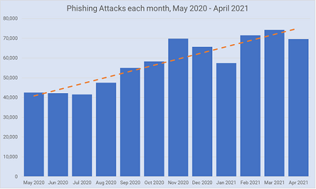 - Phishers targeted 1,804 businesses or organizations during the 1 May 2020 to 30 April 2021 period.