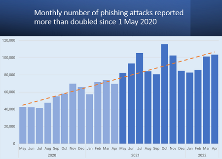 - Phishers targeted over 2000 businesses and organizations during the 1 May 2021 to 30 April 2022 period.