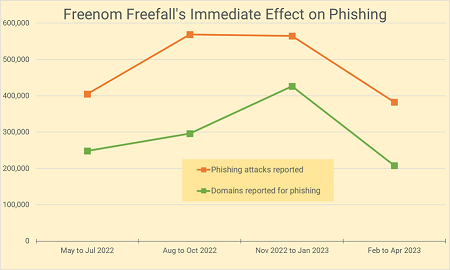 offering domains names, and the number of Freenom domains used for phishing quickly plummeted. The report reviews more than a decade of lawsuits